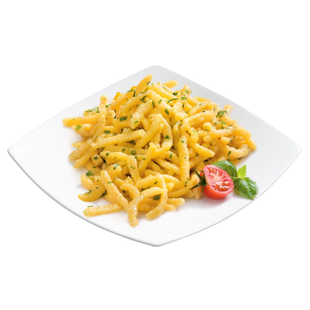 Eierspätzle, von Südtirol auf den Tisch, fertig in wenigen Minuten Die Spätzle von Koch werden nach dem traditionellen Südtiroler Rezept aus Weizenmehl, Wasser und Ei hergestellt. Für deren Produktion werden nur hochwertige Rohstoffe und keine Zusatz- und Konservierungsstoffe verwendet. Das Produkt kann in nur wenigen Minuten zu Hause als Vorspeise oder als Beilage genossen werden.