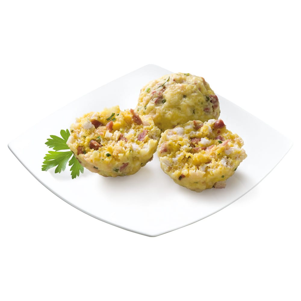 Speckknödel gehören in Südtirol, wie alle Knödelsorten, zu den beliebtesten Gerichten. Sie sind nicht nur bei den Einheimischen eine beliebte Köstlichkeit, sondern auch Touristen genießen sie sehr gerne. Speckknödel werden im Unternehmen Koch mit hochwertigen Zutaten hergestellt. Besonders bei der Auswahl des Specks wird auf Qualität und Herkunft geachtet. Der Südtiroler Speck ist ein mild geräucherter und mindestens 22 Wochen gereifter Rohschinken, der in der Region Südtirol hergestellt wird. Ursprünglich wurde der Speck von den Südtiroler Bauern hergestellt, um das Fleisch haltbar zu machen. Der Unterschied zu vergleichbarem Speck oder Schinkenprodukten liegt in der Herstellung des Specks. Im Norden des Alpenraums wird der Schinken durch Räuchern haltbar gemacht, während im Süden der Schinken in der Luft getrocknet wird. Die Südtiroler haben diese Herstellungsverfahren kombiniert. Für die Herstellung der Speckknödel wird der traditionelle Speck in kleine Würfel geschnitten und unter die Knödelteigmasse gehoben. Aus der Teigmasse werden schöne runde, gleich große Knödel geformt. Der Speck ist in Südtirol ein sehr wichtiges, traditionelles, einheimisches Produkt und wird weltweit exportiert.