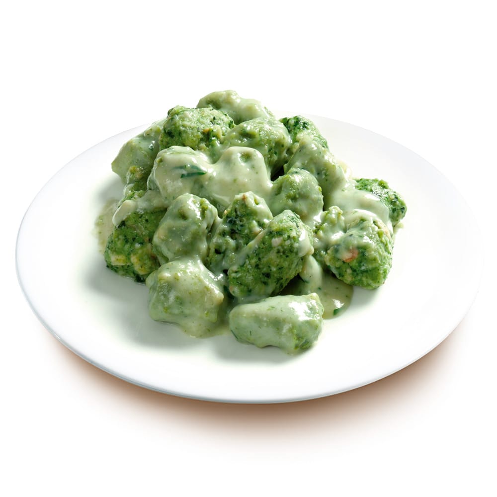 Strangolapreti mit 4-Käse-Sauce werden unter der Marke “Express” angeboten. Diese Marke wurde eigens für die bereits kompletten Gerichte von Koch eingeführt.